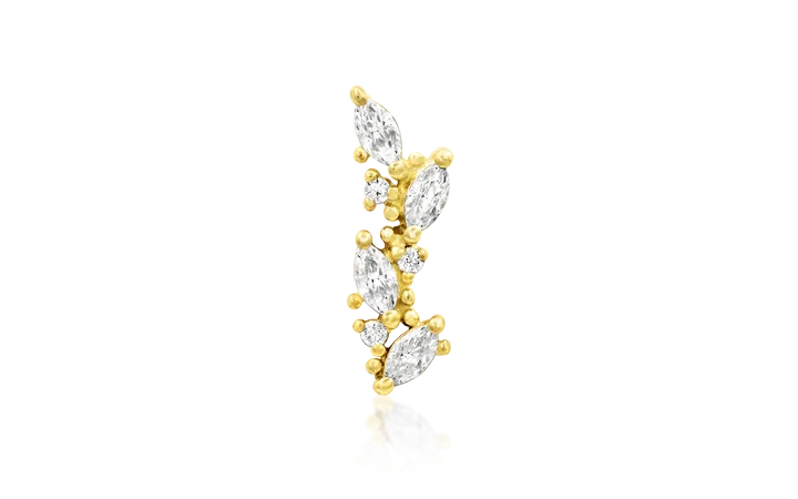 Andreia Threadless End is a floral inspired vine shape, fashioned from marquise and round cut cubic zirconias.