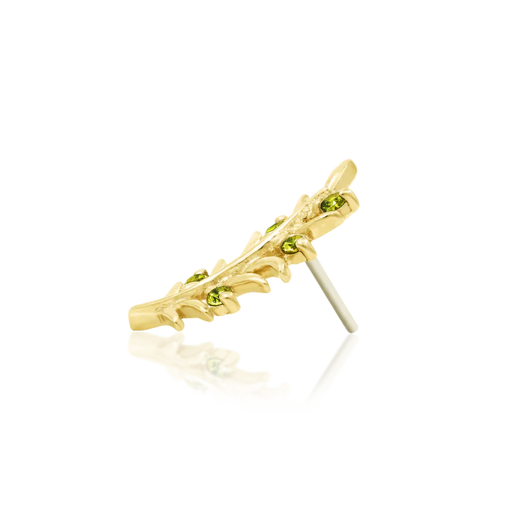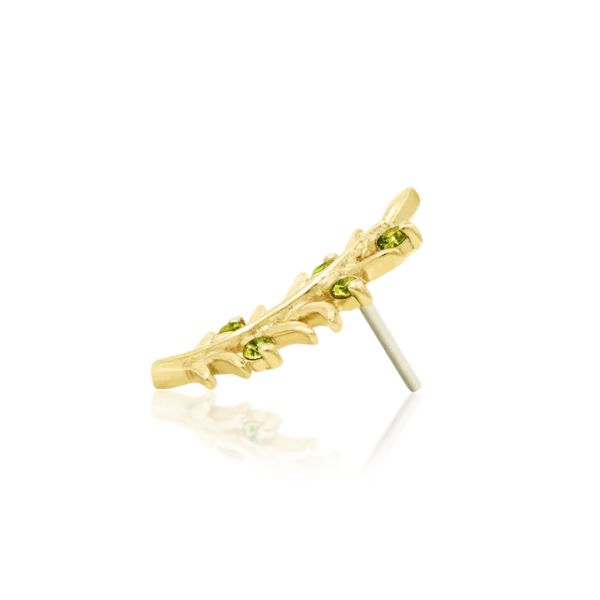 This olive branch threadless ends is adorned with 5 beautiful peridot cubic zirconia.